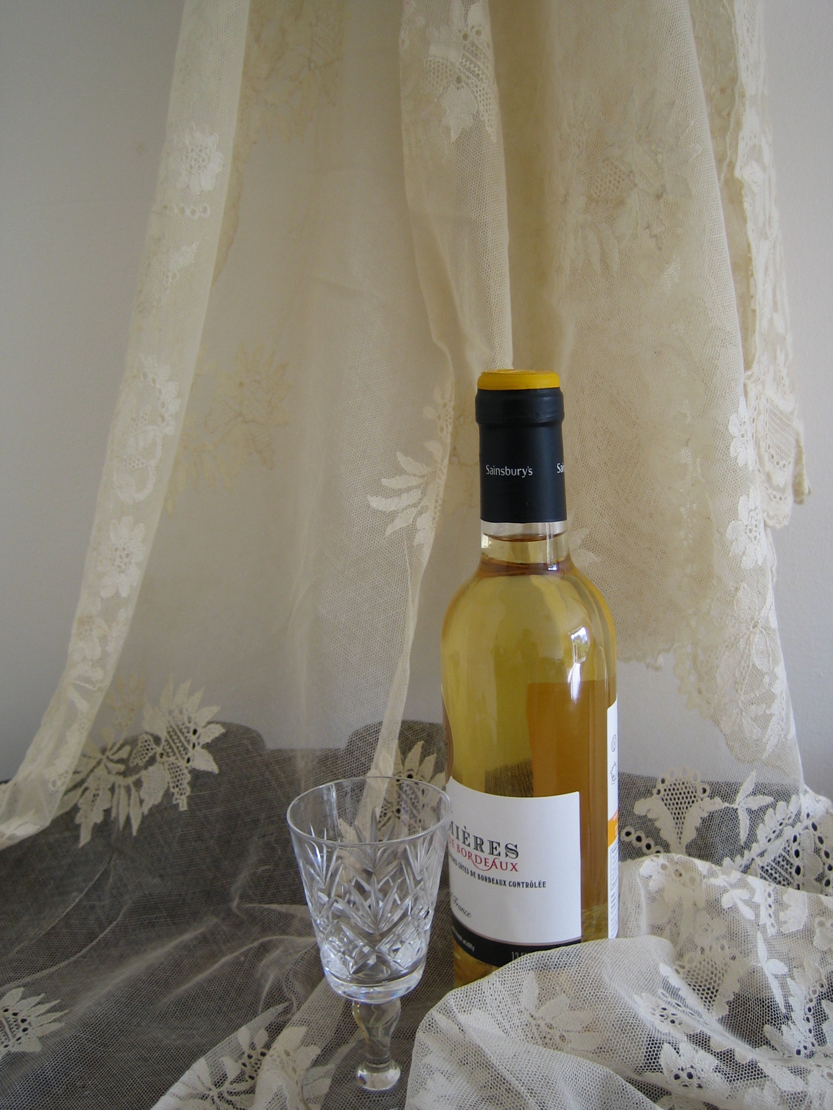 Then there was the cover. ‘A Thread of Gold’ is a family saga set in a French vineyard from just before the Franco-Prussian war up to the end of the First World War (I had nightmares writing the last bit, so intensely had I soaked myself in the records of French soldiers caught up in that horrible war). I tried to find a picture of the right sort of vineyard, preferably with a château in the middle of it, but could find none that were quite right and free to use. Perhaps a glass of wine and a half-filled bottle? But again, finding the right ones was tricky. The Sainsbury’s label is a bit of a give-away, and early wine bottles didn’t have labels both sides. Besides, the bottle wasn’t big enough.